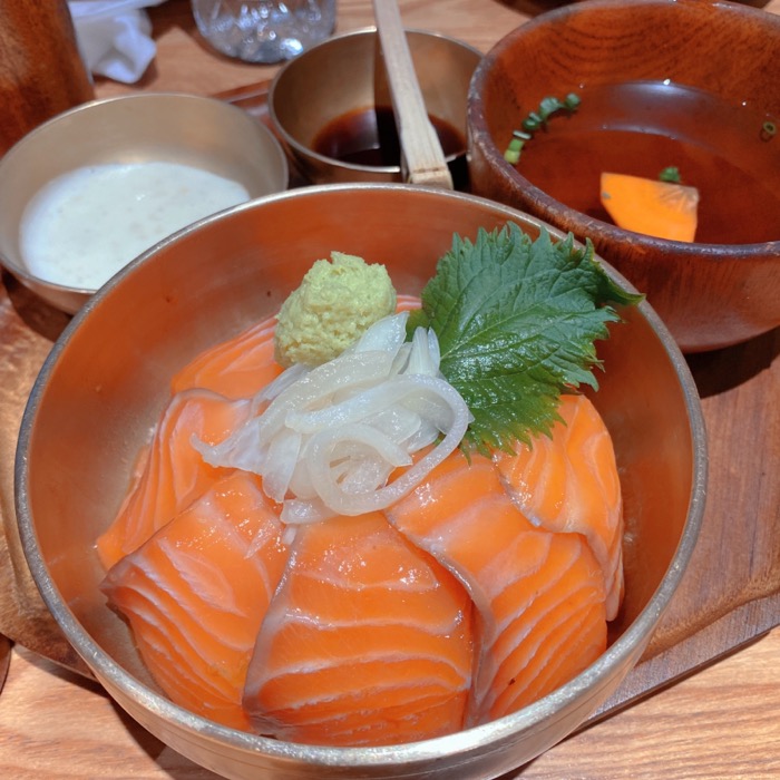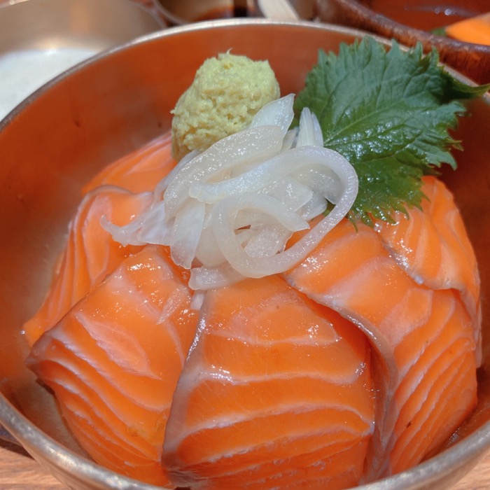 연어덮밥도 신선한 연어가 큼직하게 들어가요. 연어가 신선하다는게 중요한데... 확실히 신선한게 맛있긴 맛있더라구요. 해동 연어랑은 확실히 달라요. 연어 좋아하시는 분들은 추천하는데, 큼직한게 별로라면 음... 🤔