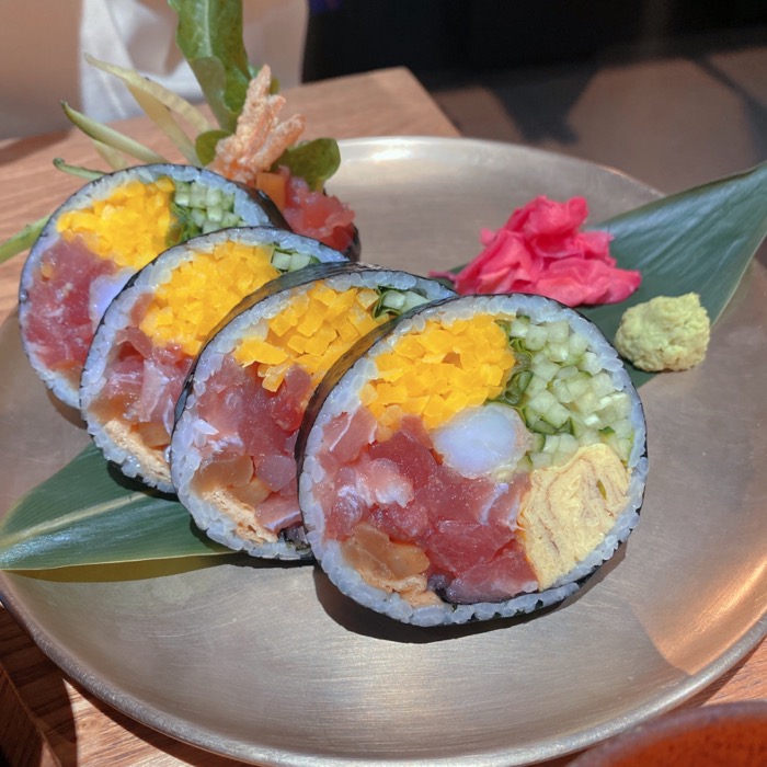 진작은 마키, 덮밥이 주력이에요. 파스타도 있긴 한데 저흰 시그니쳐 메뉴인 후토마키, 그리고 연어를 좋아하는 짝을 위해 연어덮밥을 시켰어요. 다음에 방문할 일이 있다면 덮밥 위주로 시켜도 좋을 듯 싶어요.