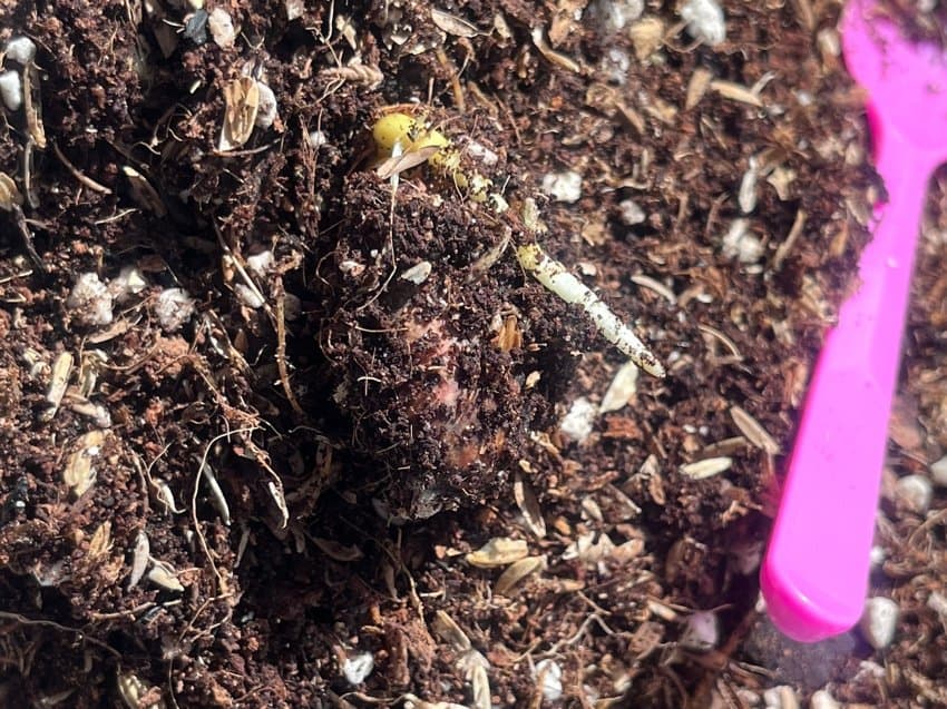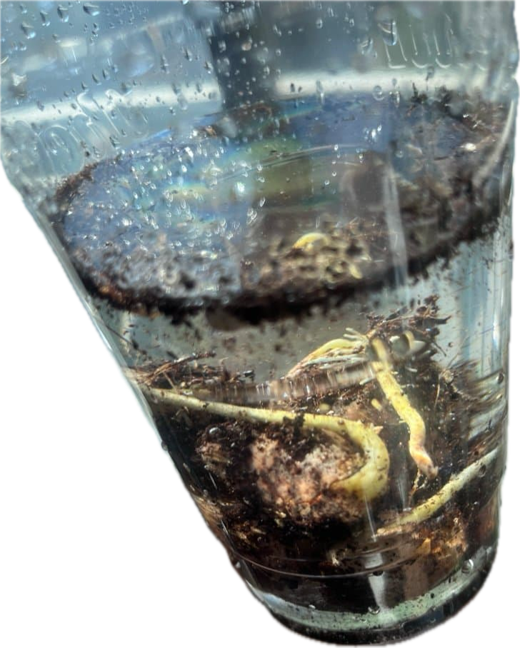 잭후르츠 씨앗을 남는 화분에다가 막 넣어놨더니 1주일 만에 이 정도로 뿌리가 내렸어요.