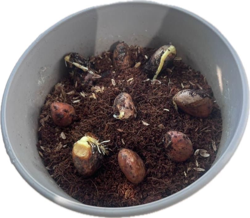 잭후르츠 씨앗을 익히거나 볶으면 의외로 캐슈넛 같은 맛이 난다고 해요. 어쨌든 씨앗 발아하는 모습을 보여드릴게요.