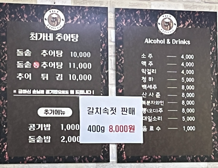 아 그리고 매장 한 켠에 수정과도 있어요. 😂😂😂 어르신들이 싫어할 수가 없는 조합이죠. 추어탕 한 그릇 하고 수정과로 입가심... 여기 완전 추천합니다. 진한 추어탕 국물에 싫어할 수 없는 조합. 일산시장 숨겨진 맛집..