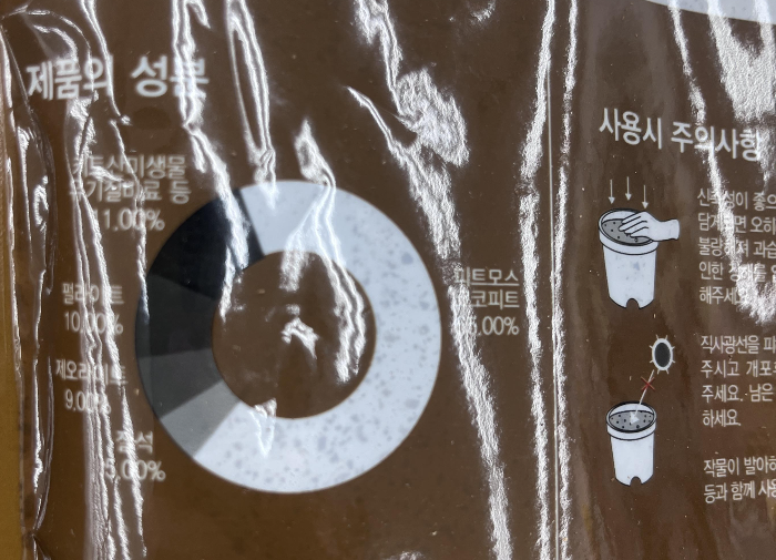 - 코코피트와 피트모스 비율이 높으면 뭐가 좋냐구요? 보습성과 배수성이 좋아져요. 적어도 산에서 막 퍼올린 흙보다는 과습의 위험이 적어지죠. 물론 이들로만 식재하면 양분이 없어 성장이 느리지만... 다이소에서 판매하는 흙에는 비료가 약간 들어있어 2~3개월 간은 비료를 주지 않아도 키울 수 있어요.