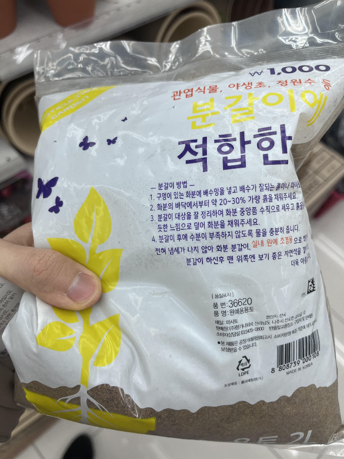 - 👍 물론 흙을 인터넷이나 화원에서 50L 이상 대용량으로 사면 저렴하죠. 그럼에도 추천하는 이유는 소포장으로 급하게 구매할 수 있기 때문이에요.