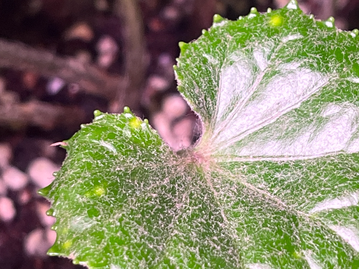 반딧불이 머위는 원래 털머위로, 이렇게 땅속줄기에서 올라오는 신엽은 분홍빛의 털에 감싸져 있습니다. 원래 식물에 있는 털의 기능은 (1) 더위, 추위 또는 건조 스트레스에 대한 보호, (2) 초식동물 및 해충으로부터 신엽을 먹히지 않기 위한 목적, (3) 광합성 효율 극대화입니다.